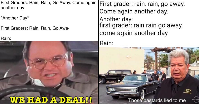 1st Graders Rain Rain Go Away Come Again Another Day Rain Meme